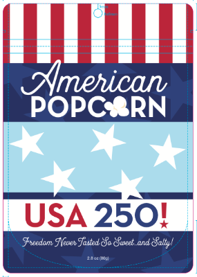 Bursting with bold red and blue candy-coated popcorn and our classic salted white, each bag is a festive tribute to the land of the free and the home of the brave.