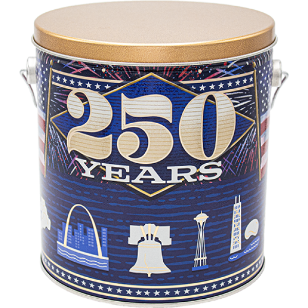 Celebrate America's historic 250th anniversary with our special commemorative 1-gallon popcorn tin! Featuring stunning designs of America's most iconic landmarks, this limited-edition tin is a perfect way to honor this milestone. Customize your tin by choosing up to 3 of our delicious gourmet popcorn flavors.