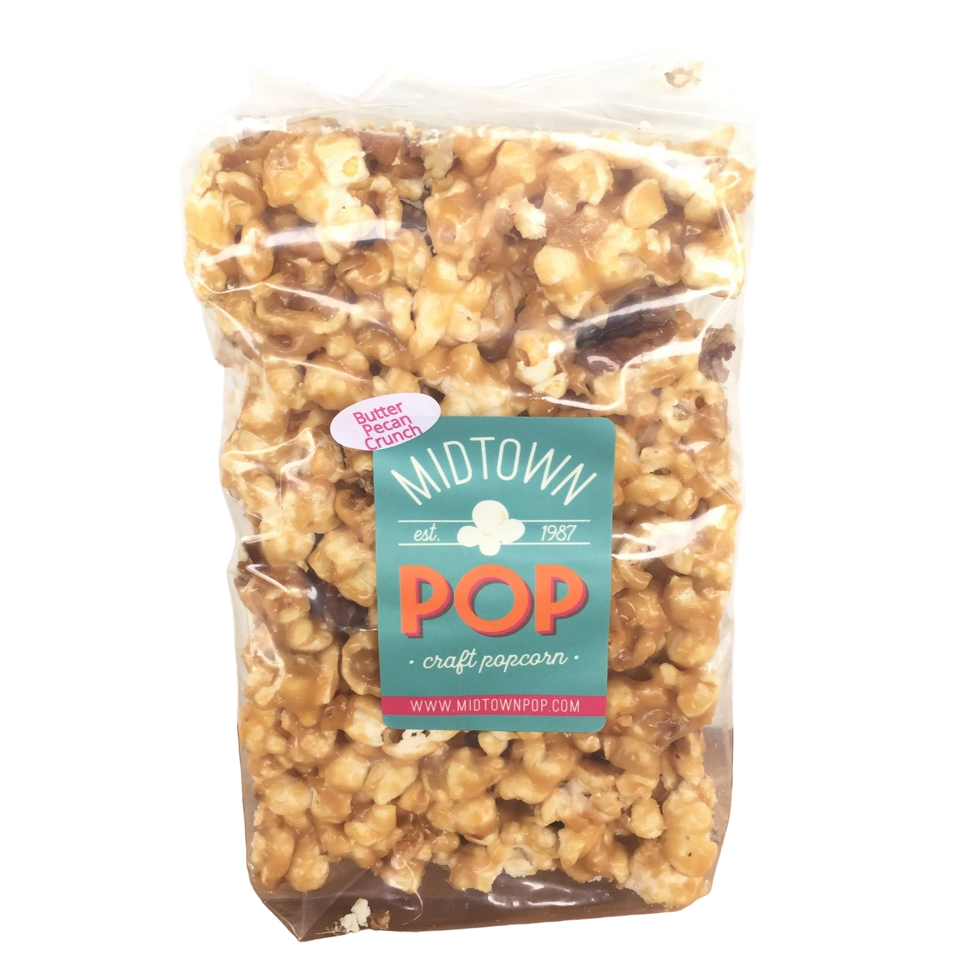 This may be our best kept secret! Our Butter Pecan Crunch is a "brittle-like" crunchy confection that's actually a toffee-coated treat. When you add it to our flaky popcorn, it takes away the tooth-breaking nature of traditional brittle, and the result will make any sweet-tooth a happy camper!